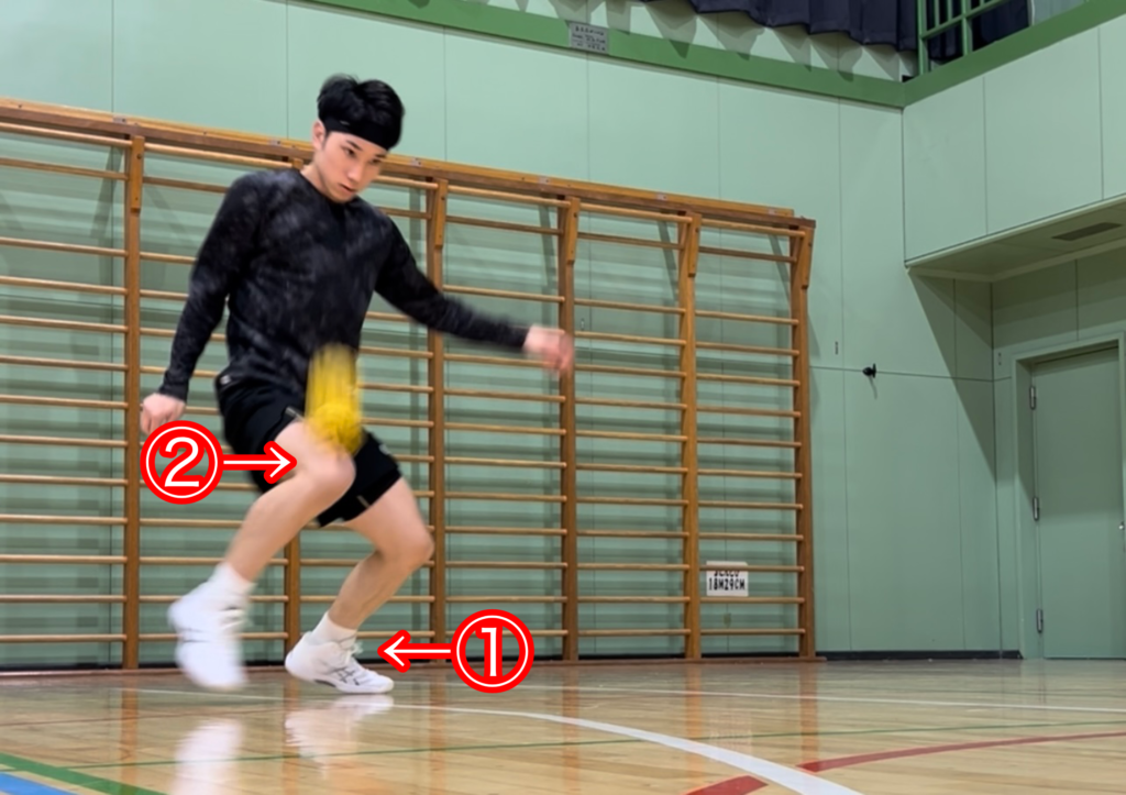 ②レシーブ位置まで腿を真横にずらす