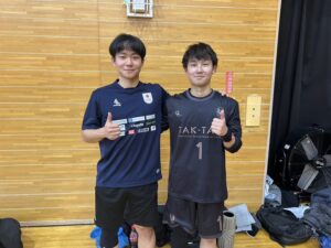 わたる・えいたと出ました。お分かりでしょう、道大リベンジレグです。1年前とはうってかわり、全く気まづくない楽しいレグです。対戦相手はいっちー・吉留・ばーりょうと科学大の同期でした。科学大は不戦勝で交流試合したんですけど、気が抜けまくってゴミ試合しました。記憶ない。いっちーとやった時はサーブ入らないしレシできないし、右胸ぶち抜かれて謝られるしいいとこなかった。我々がレグ組んだ時まだ戦って勝利したことがないという衝撃の事実。来年広島オープンでRe:Revengersとして1勝以上目指して頑張ろう。